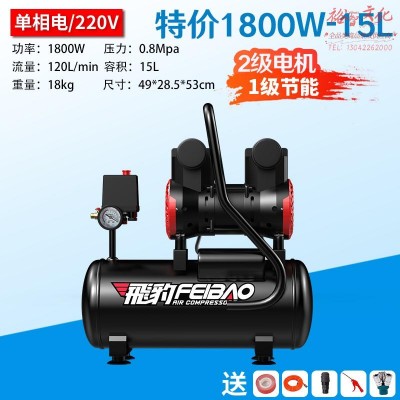 飛豹(FEIBAO)低音无油空压机小型220V工业级空气压缩机木工钉枪喷漆汽修打气泵 15L-1800W带电磁阀/双管上气SKU:yzwhyp961922