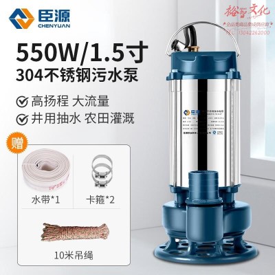 臣源潜水泵220V家用污水泵铝壳抽水泵井用农用排污泵小型高扬程清水泵 550W/1.5寸污水泵SKU:yzwhyp961961