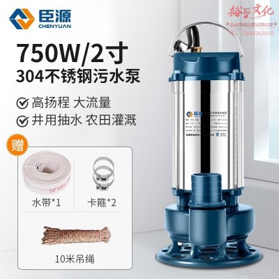 臣源潜水泵220V家用污水泵铝壳抽水泵井用农用排污泵小型高扬程清水泵 750W/两寸污水泵SKU:yzwhyp961962