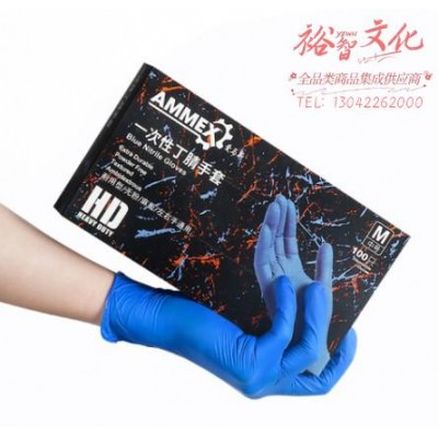 爱马斯一次性丁腈手套加厚防滑防油耐酸碱餐饮加工工业制造蓝色 APFNCHD耐用款100只/盒 中号M码SKU:yzwhyp961999
