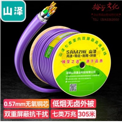 山泽(SAMZHE) 730SZP 七类双屏蔽网线 低烟无卤无氧铜箱线 CAT7类工程万兆网络宽带线 305米紫色SKU:yzwhyp962057