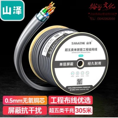 山泽(SAMZHE)FTP-305A 超五类单屏蔽千兆网线 CAT5e无氧铜 工程高速网络监控安防线 灰色305米SKU:yzwhyp962059