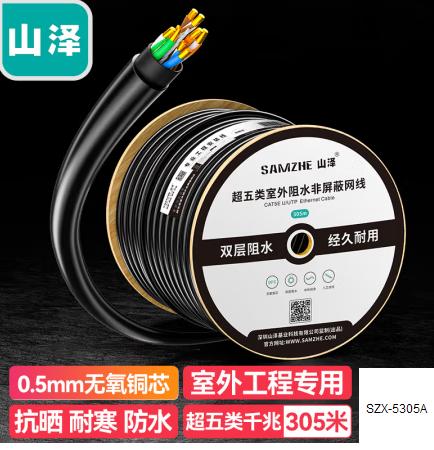 山泽(SAMZHE)SZX-5305A 超五类网线【室外阻水0.5mm无氧铜线芯】CAT5e防水抗晒耐寒非屏蔽网线 305米SKU:yzwhyp962070