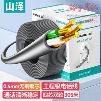 山泽(SAMZHE)DWX305 原装电话线【普通版0.4线芯】两对双绞四芯网线电话线 灰色305米SKU:yzwhyp962072