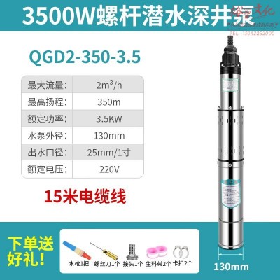 不锈钢油浸式螺杆潜水泵深井泵220V单相小型家用高扬程农用抽水泵 3500W350米扬程15米线2吨SKU:yzwhyp962130