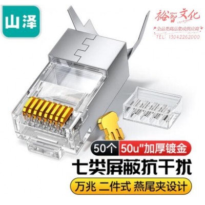 山泽(SAMZHE)WL-50 七类万兆铜壳屏蔽两件式CAT7水晶头FTP万兆网络RJ45头带尾夹1.3MM线孔50个装SKU:yzwhyp962142