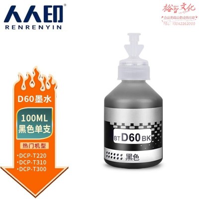 首页 > 办公用品 > 墨水 > 人人印 D60BK墨水 黑色 适用于兄弟DCP-T300 T310 T500W T510W T700W T710W MFC-T800W T810W T910DW SKU:SKU:yzwhyp962145