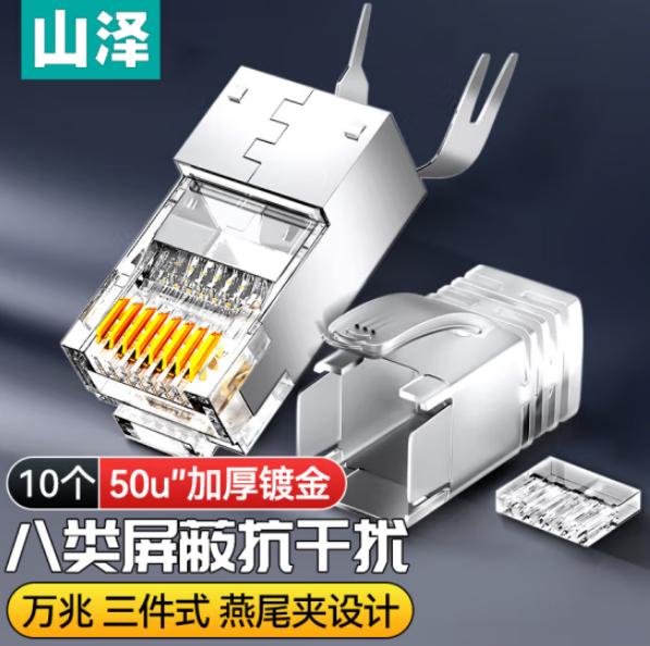 山泽(SAMZHE) 8010SJT 八类水晶头Cat8万兆网络网线水晶头 RJ45工程级电脑网线连接头 三件式装配 10个/盒SKU:yzwhyp962157