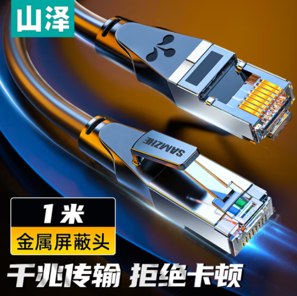 山泽(SAMZHE)GWD6010 六类网线 CAT6类千兆网络连接线 工程家用电脑宽带8芯双绞金属屏蔽头成品跳线 黑1米SKU:yzwhyp962161