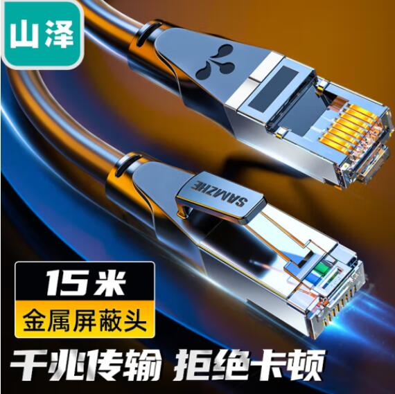 山泽(SAMZHE)GWD6150 六类网线 CAT6类千兆网络连接线 工程家用电脑宽带8芯双绞金属屏蔽头成品跳线 黑15米SKU:yzwhyp962167