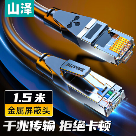 山泽(SAMZHE)GWD6015 六类网线 CAT6类千兆网络连接线 工程电脑宽带8芯双绞金属屏蔽头成品跳线 黑1.5米SKU:yzwhyp962180
