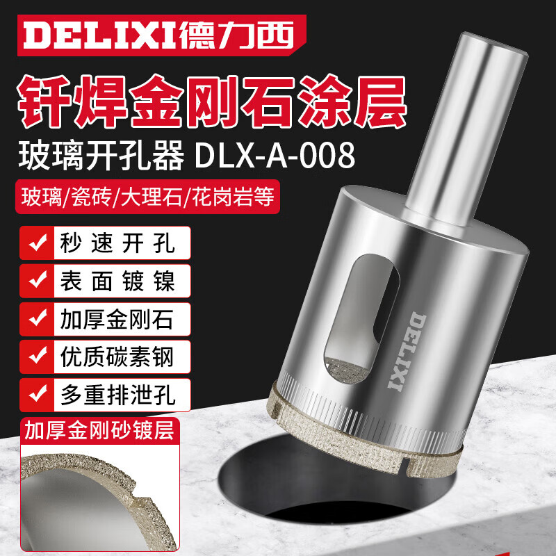 德力西(DELIXI)金刚石涂层玻璃开孔器 DLX-A-008【60mm】SKU:yzwhyp962236