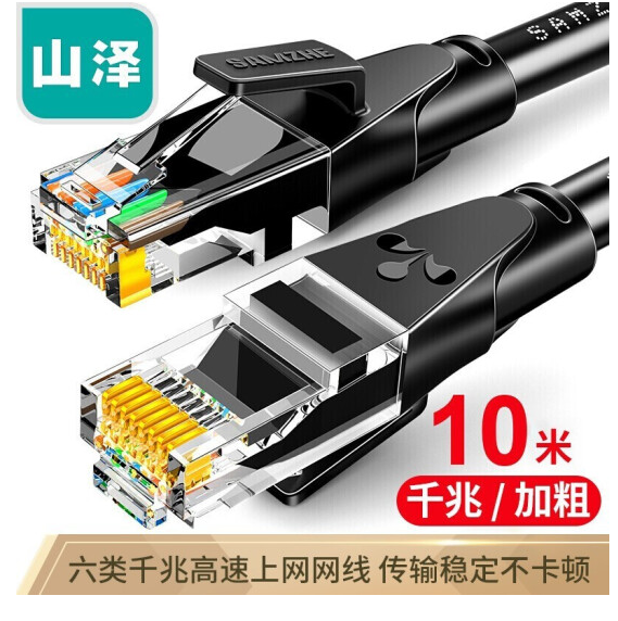 山泽WD6100六类成品网线 CAT6类千兆极速8芯双绞 黑色10米SKU:yzwhyp962263