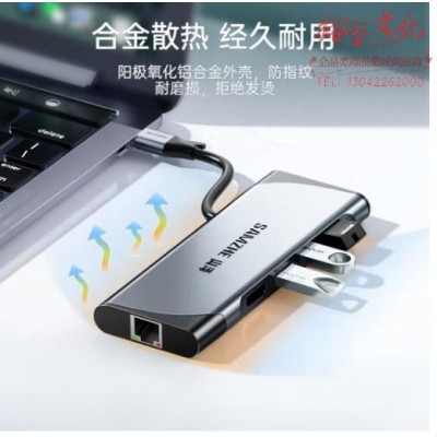 山泽Type-C扩展坞六合一 usb-c转hdmi网口PD接头华为联想苹果mac笔记本电脑接口拓展转换器hub3.0分线器SKU:yzwhyp962383