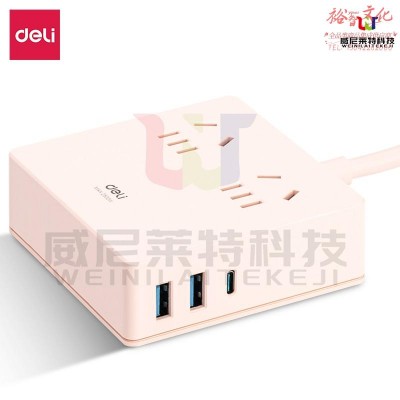 得力33905(01)USB延长线插座_2组 3U_1米_彩盒装(浅红)(个)SKU:yzwhyp962783