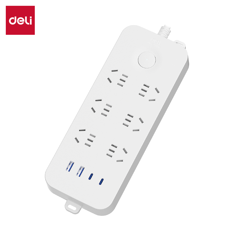 得力LX3035(1.8)插座插线板_6组 2A2C_1.8米(白)(个)SKU:yzwhyp962796