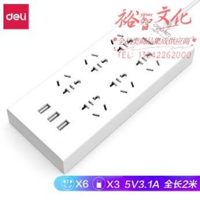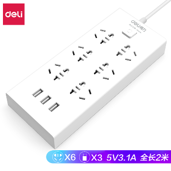 得力18284插座6组 3U 2米彩盒装(白)SKU:yzwhyp962803