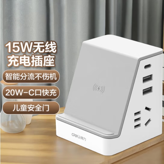 得力 15W快充 无线充电器 插排/插线板/接线板/排插 支架 33670S SKU:SKU:yzwhyp962810