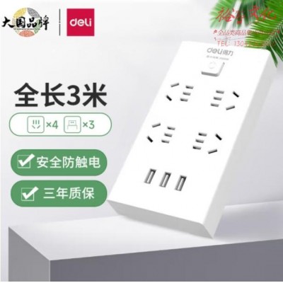 得力 3USB接口 4位插座 全长3米带保护门 18282-03插座插排接线板SKU:yzwhyp962823
