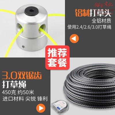 通用割灌锄除草打草机绳果园割草尼龙绳割草机打草头打草绳收割机配件 (铝制头 3.0双锯齿绳)1组SKU:yzwhyp962989