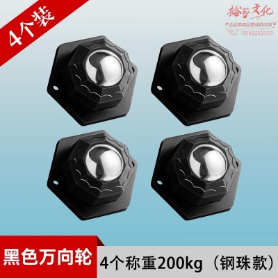 万向轮大承重360度旋转家具茶几衣柜床头柜轮子免打孔粘贴 黑色4只装(钢珠)SKU:yzwhyp963026