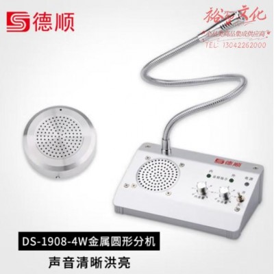 首页 > 广播、电视、电影设备 > 组合音像设备 > 会议、广播及音乐欣赏系统 > 德顺(DESHUN)窗口双向对讲机DS-1908-4W金属圆形银行医院柜台车站邮局窗口专用对讲麦克风扩音器 SKU:yzwhyp963176