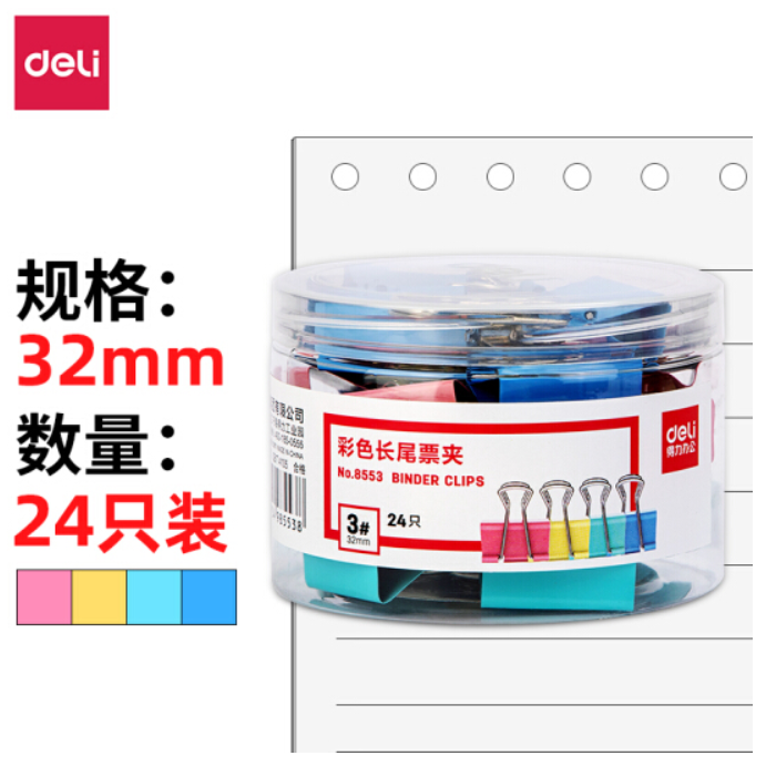 得力(deli)8553 32mm彩色长尾夹票夹 3#中号金属燕尾夹票据文件夹子 ID:7SKU:yzwhyp963215
