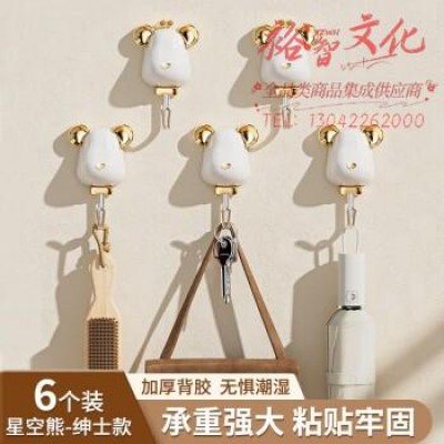 【威尔基6713-001】威尔基挂钩免打孔粘钩强力贴勾墙壁钩子厨房墙上卫生间免钉无痕自粘钩子 星空熊-绅士挂钩6个 袋装SKU:yzwhyp963238