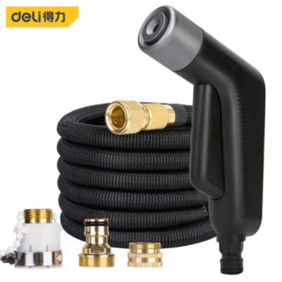 得力(deli)便携多功能家用高压洗车水枪5件套伸缩水管