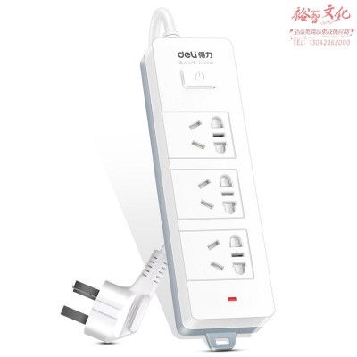 得力18274(05)插座_3组_5米_PVC袋装(白)(只)SKU:yzwhyp963287