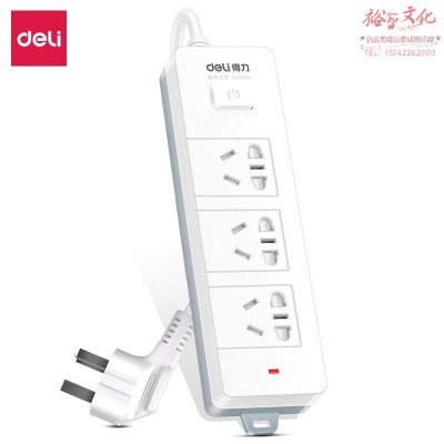 得力18274插座_3组_2米_PVC袋装(白)(只)SKU:yzwhyp963288