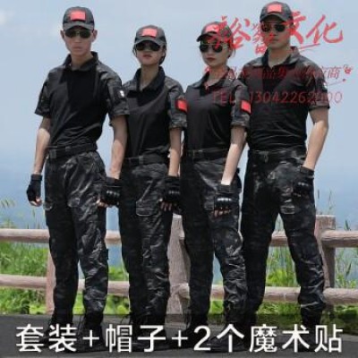 盾郎蛙服迷彩服套装男夏季战术服短袖女上衣裤子户外拓展训练服大码 暗夜【套装 帽子 魔术贴】 S/30SKU:yzwhyp963311