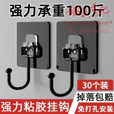 宜思家(YISIJIA)挂钩粘钩强力承重免打孔无痕粘胶厨房墙壁浴室 黑色 30个装SKU:yzwhyp963317