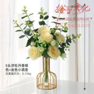 顺之谜北欧ins洋牡丹假花仿真花束摆件客厅桌面摆设装饰花室内餐桌花艺 5头洋牡丹香槟色 金色花器 qySKU:yzwhyp963355