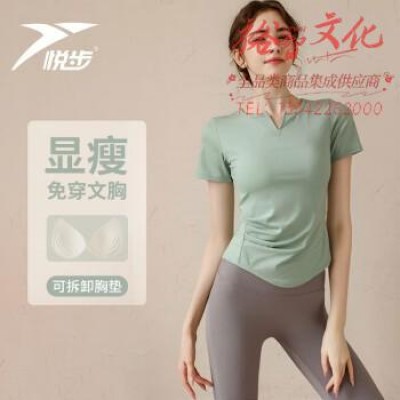 瑜伽服女上衣带胸垫套装速干衣短袖T恤普拉提训练夏季跑步健身服 绿色【含胸垫】 M【推荐100-110斤】SKU:yzwhyp963404