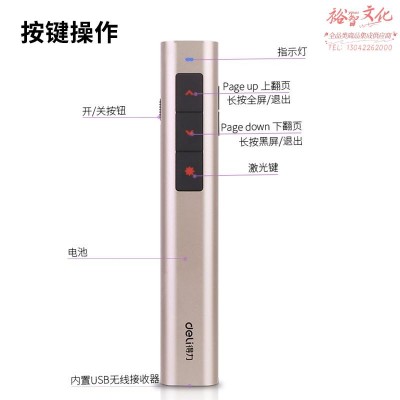 得力(deli) 红光 可充电激光无线演示器 PPT激光翻页笔2809R 香槟金SKU:yzwhyp963585