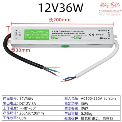 超薄防水雨LED开关电源12V 36WSKU:yzwhyp963687