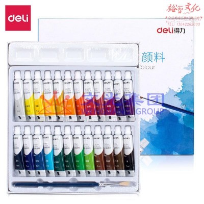得力73861-24色5ml水彩颜料绘画套装色彩文具(含毛笔调色格)(混) SKU:WG0115835SKU:yzwhyp963779