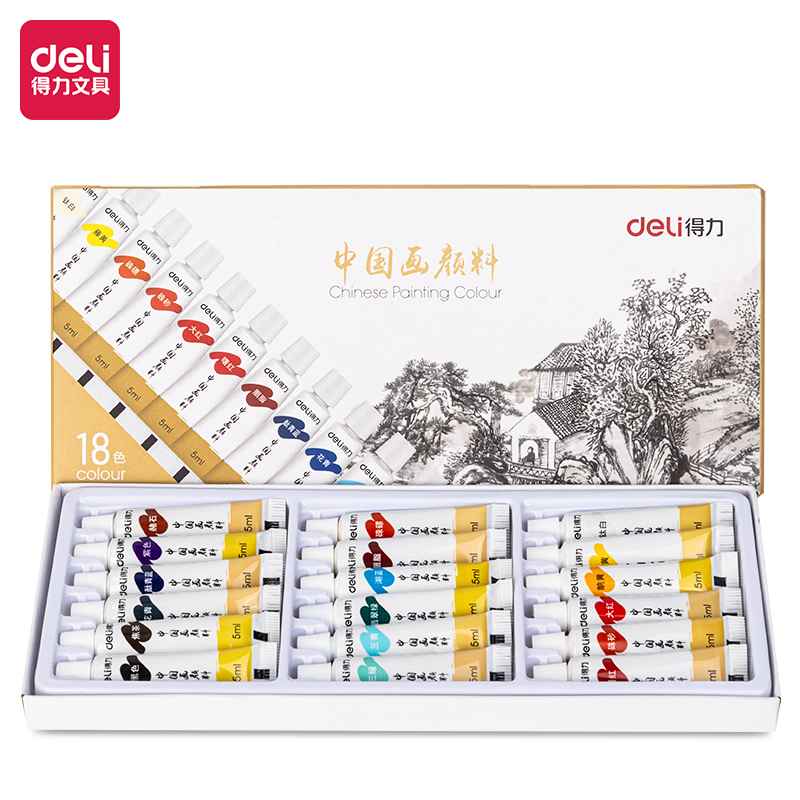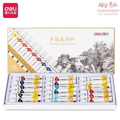 得力73865-18_国画颜料5ml*18色学生绘画中国画颜料 画具画材(混)(盒) SKU:SKU:yzwhyp963790