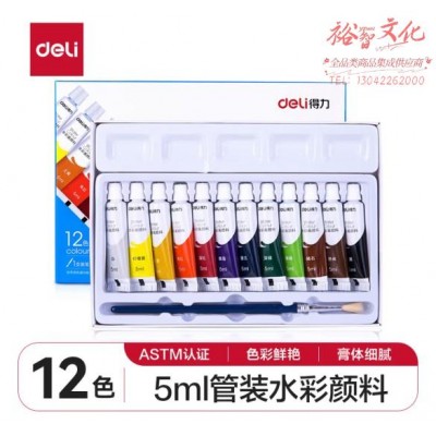 得力73859 12色5ml水彩颜料(含毛笔调色格)SKU:yzwhyp963803