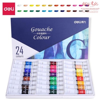 得力73855-24色水粉颜料12ml 水粉画学生儿童绘画套装便携工具 SKU:YZ0115836SKU:yzwhyp963819