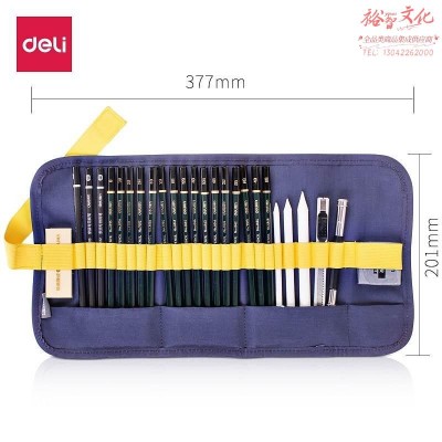 得力(deli)58125_炭笔绘图套装(单位:盒)混专业绘图铅笔 帆布笔帘 炭笔 可塑橡皮 纸擦笔 美工刀SKU:yzwhyp963843