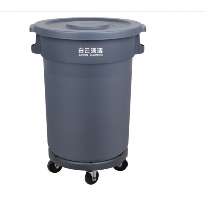 白云清洁/BAIYUNCLEANING 大号圆形垃圾桶 带盖带轮底座 120L圆形垃圾桶