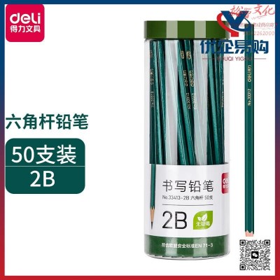 得力33413-2B_50支PET桶装绿杆2B铅笔(混)(50支/桶)SKU:yzwhyp963890