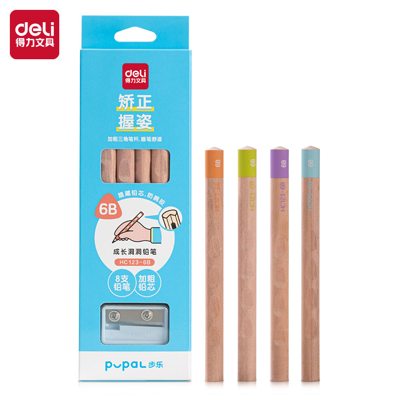 得力HC123步乐成长洞洞书写铅笔 6B 8支/盒(盒)SKU:yzwhyp963901