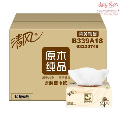 清风 原木纯品 抽纸 B339A18 180抽 3盒*12提 (新老包装随机发货)SKU:yzwhyp963912