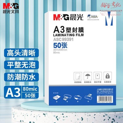 晨光 A3/50张 80mic透明高清塑封膜 307*430mm文件照片过塑膜 ASC99391SKU:yzwhyp963931