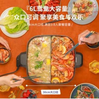 荣事达(Royalstar)鸳鸯电火锅电炒锅家用多功能煎烤涮一体炒菜电煮锅6L大容量不沾电热锅电锅 RHG-136B(Y)SKU:yzwhyp963948