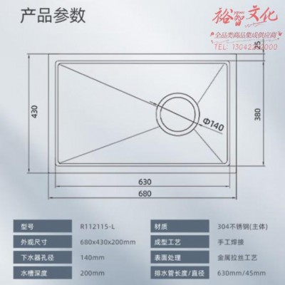 首页 > 用具 > 其他厨房用具 > 荣事达(Royalstar)304不锈钢手工厨房水槽 洗菜盆一体盆洗碗池 大容量单槽R112115-L 68*43 落槽 右侧加大排水 不含安装SKU:yzwhyp963968