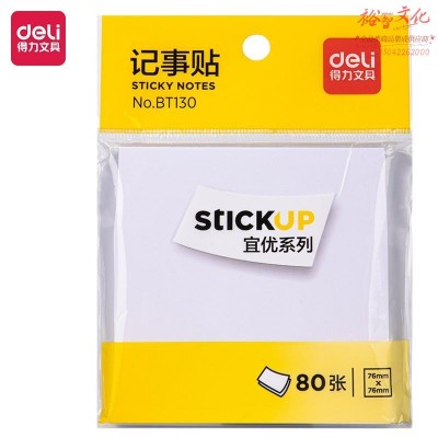 得力(deli)白色便利贴 76*76mm优事贴便签贴便签纸 N次贴留言贴笔记本本子 办公用品 BT130SKU:yzwhyp964002